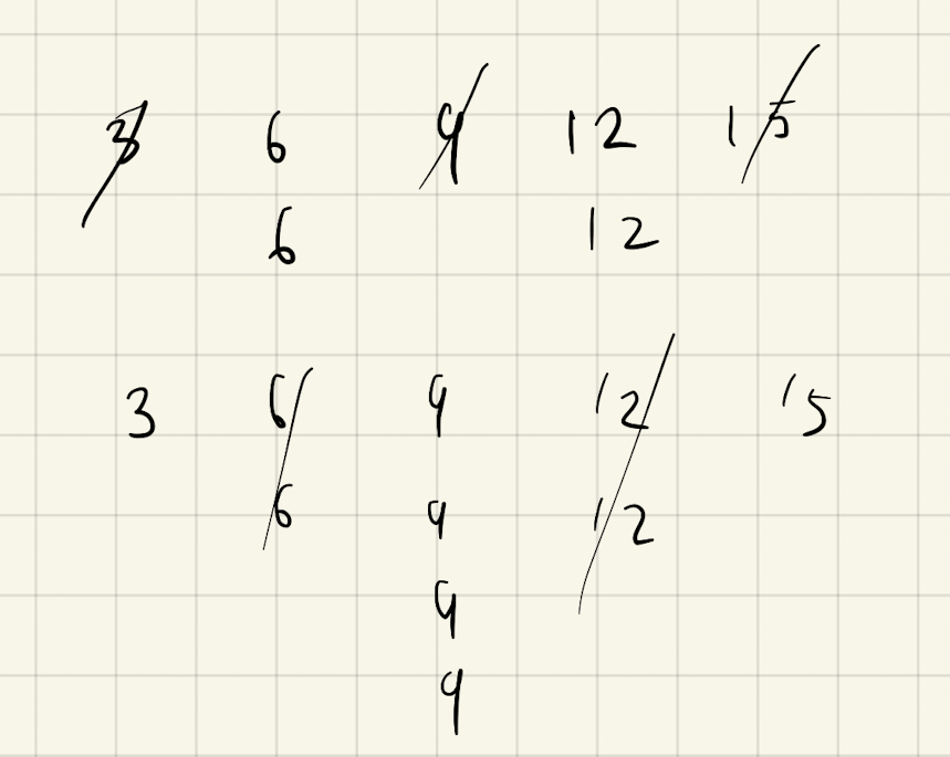 同じ数字の出現が複数ある場合、全て残すか、全て消すかのいずれかとなる