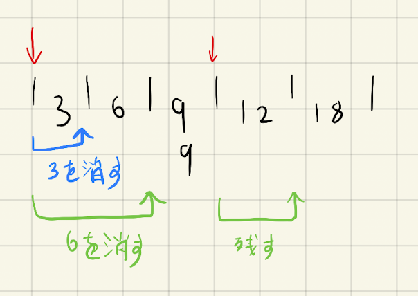 i番目を消し、i+1番目に遷移。i番目の数字の個数がコストとして加算される